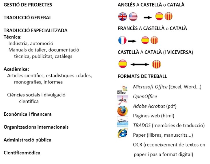 Sempre cap a una llengua materna, per garantir la naturalitat i la precisió del text final. Des de textos generals fins a terminologia especialitzada. Des de manuscrits en paper fins a formats digitals i memòries de traducció.